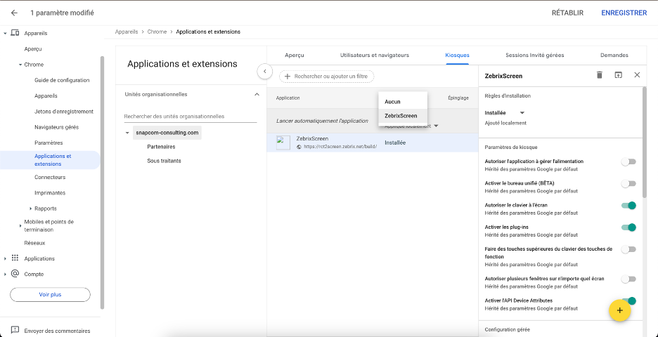 Déployer zebrix sous Chrome OS