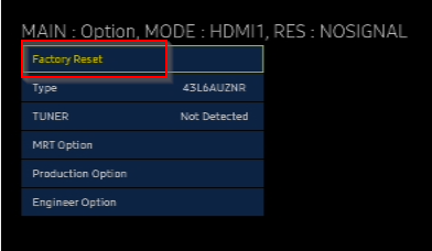 - Factory Reset Procedure on SSSP Screen
