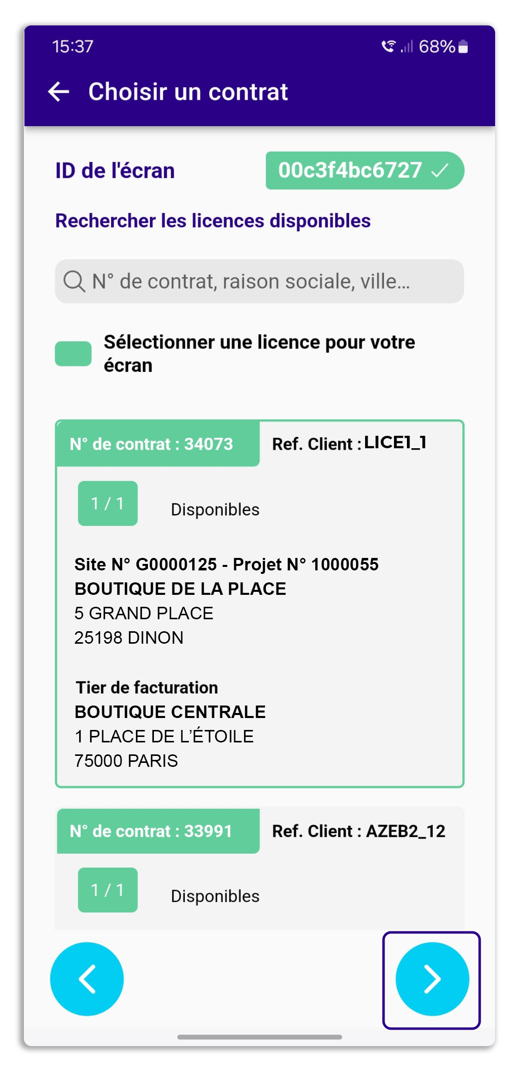 - Activation d'écrans par l'appli mobile