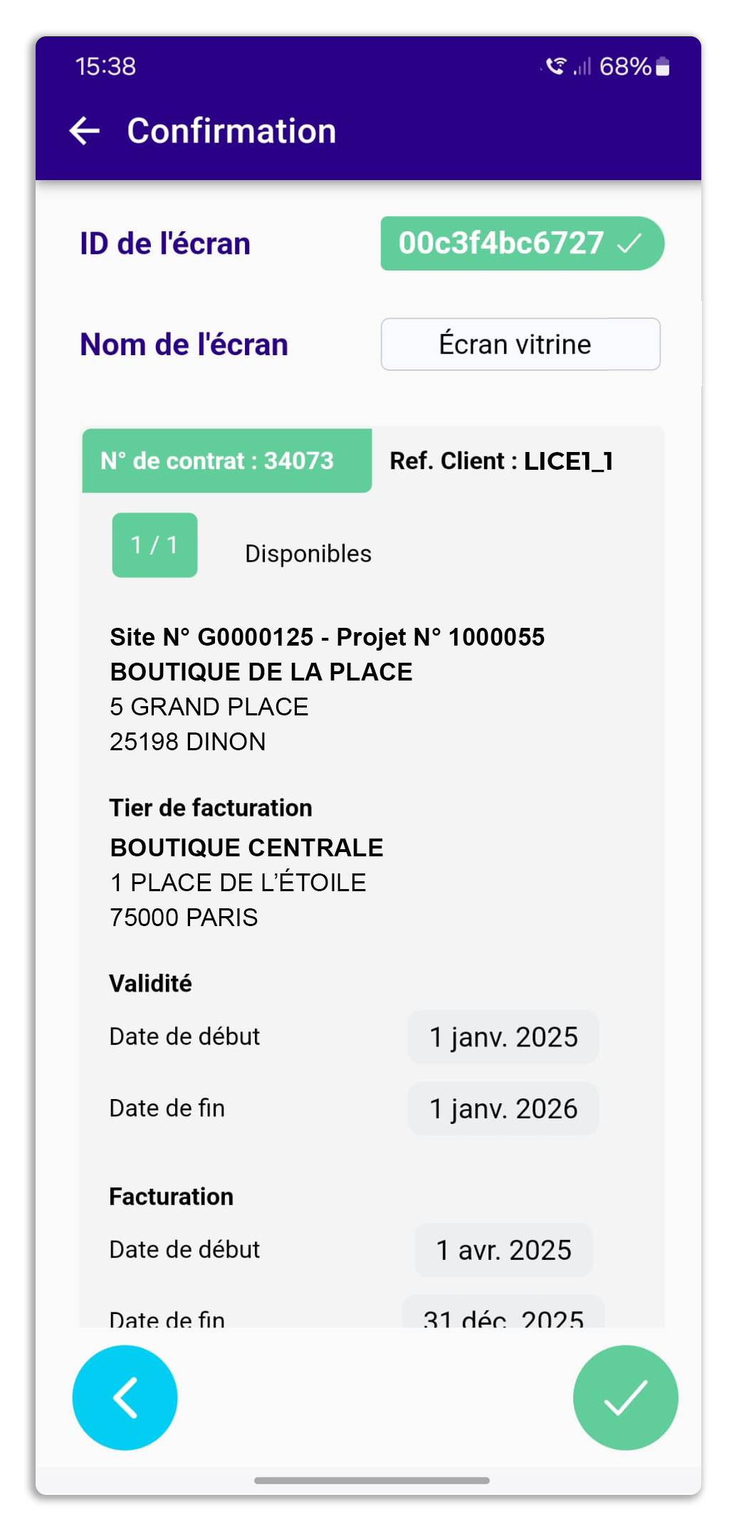 - Activation d'écrans par l'appli mobile