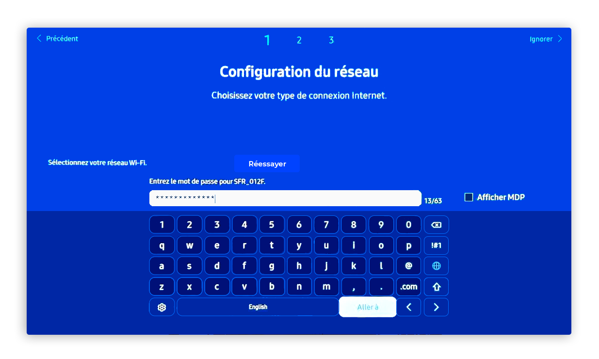 - Configuration initiale – Écran Tizen 7