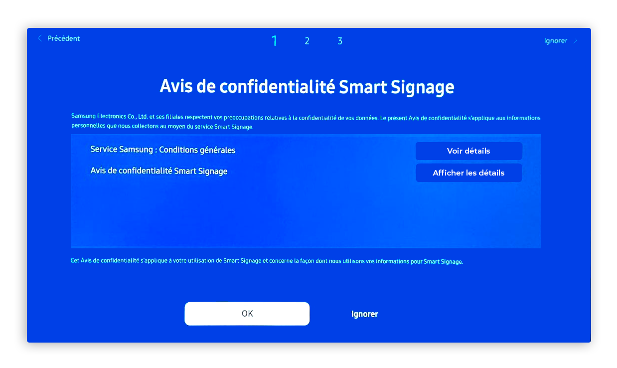 - Configuration initiale – Écran Tizen 7