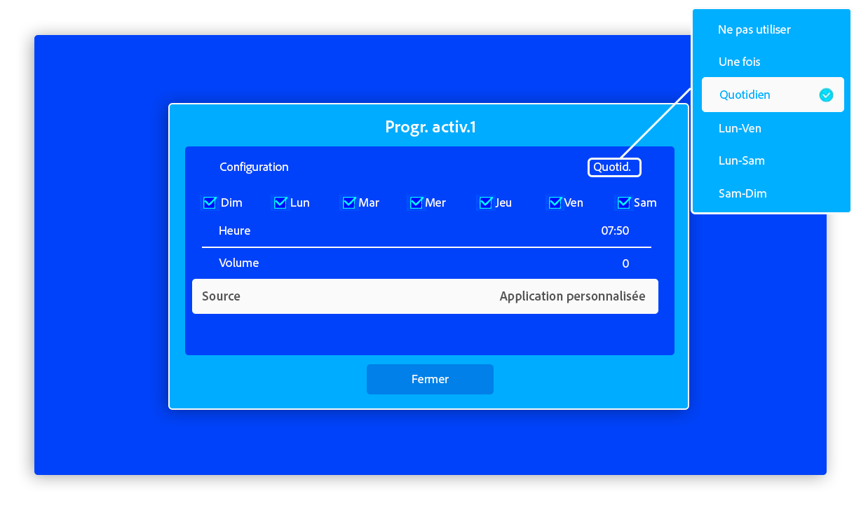 - Configuration initiale – Écran Tizen 7