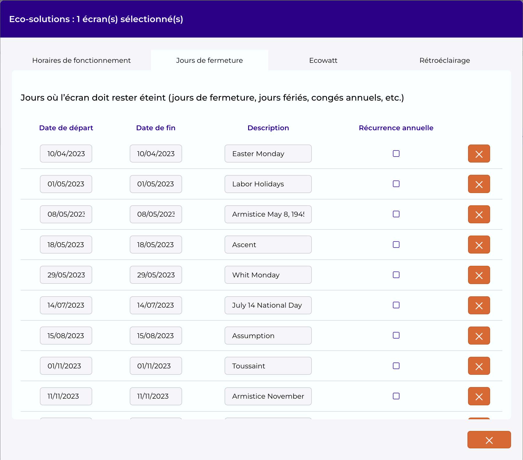 - Le bouton éco-solutions (accessible depuis la page des écrans de zebrix)